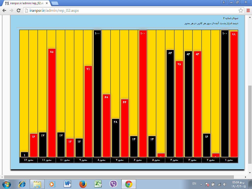 2. نمودار ارزش گذاری (درصد امتیاز داده شده به) هریک از محورهای 12 گانه از سوی هریک از دونفر برای نشان دادن ارزش هریک از این محورها از نگاه هریک از دوفرد.